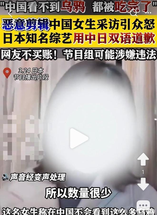 日本综艺节目无端造谣“中国人爱吃乌鸦”,道歉难掩恶意